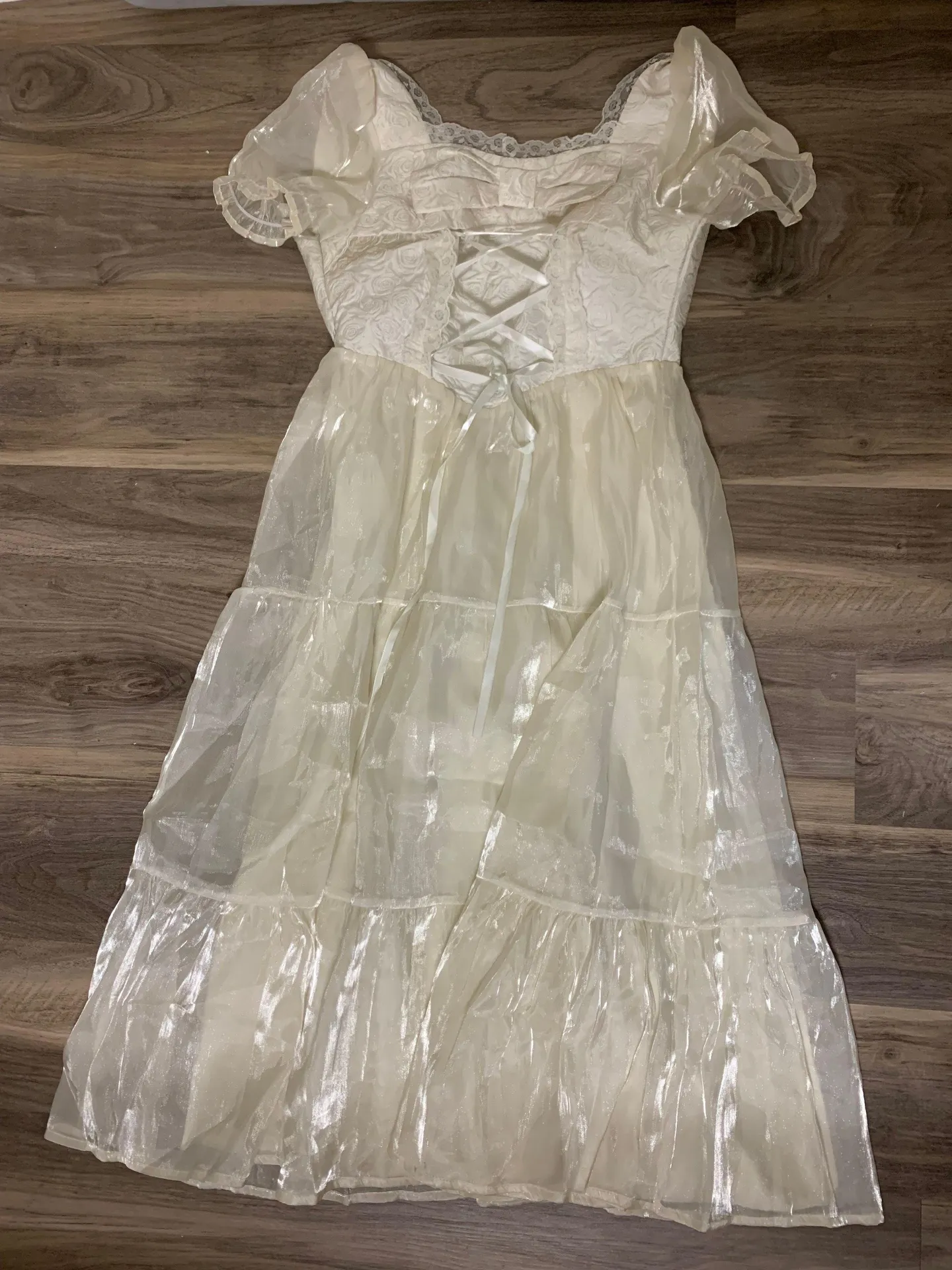 Cream colored laced dress perfect for semi formal or formal events. Gorgeous material and super co... Show more
