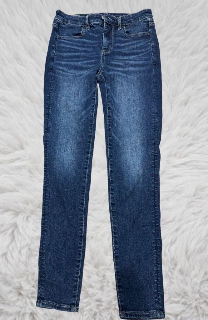 Discover the timeless appeal of American Eagle Outfitters' blue straight leg jeans, crafted for a cl... Show more