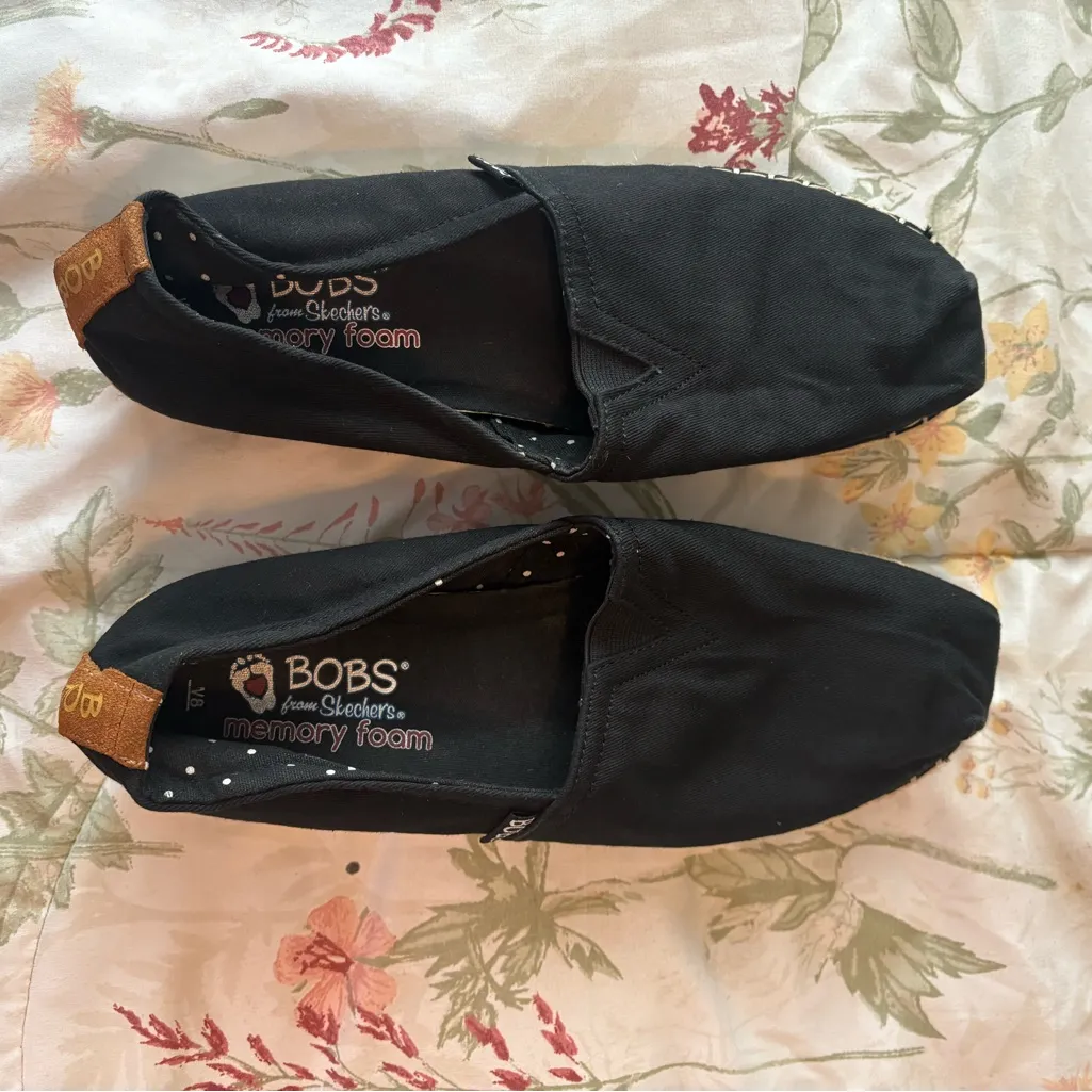 Black canvas espadrilles with memory foam insole. Ideal for casual wear.