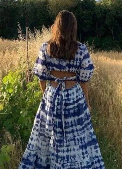 Mango MNG tie dye dress with open tie back and short sleeves. •Cutout Open Back with tie •Puffed s... Show more