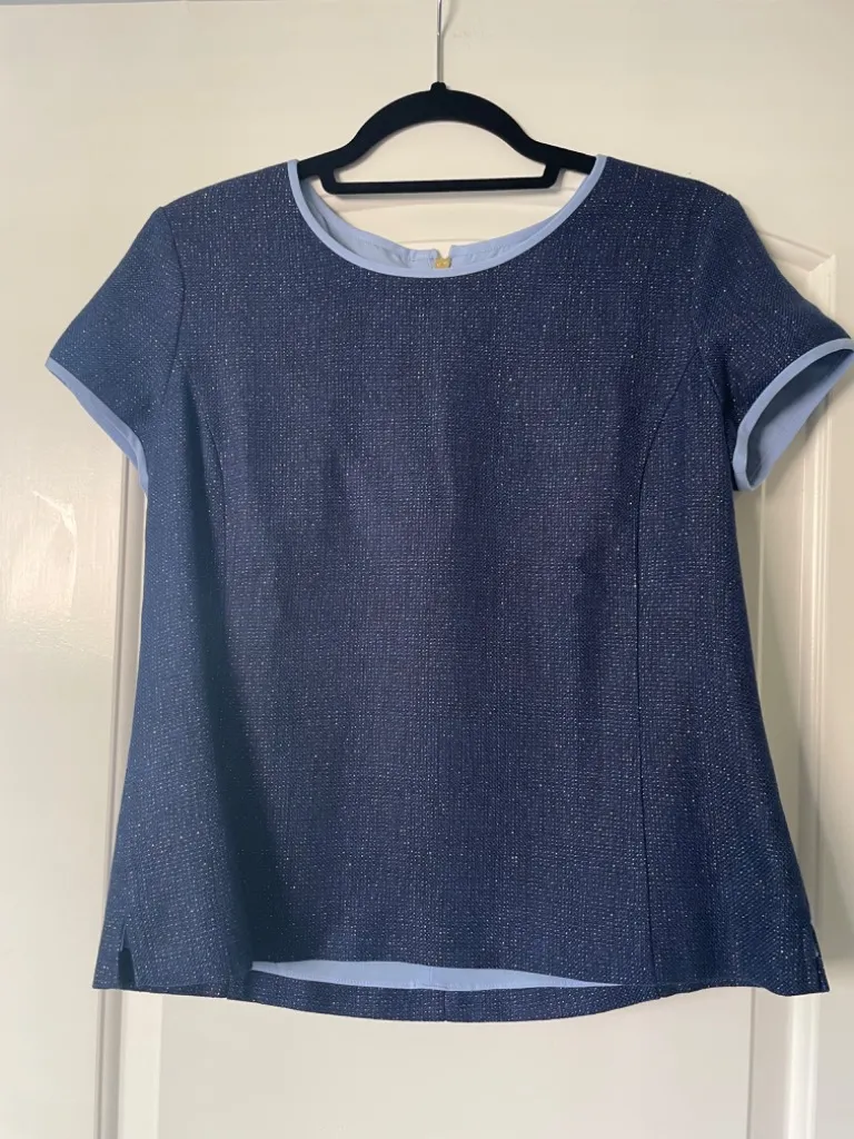 BRAND NEW WITH TAG $178 SAIL TO SABLE NAVY BOUCLE SHORT SLEEVE TOP SIZE S! * BOUCLE FABRIC, NAVY WITH SUBTLE METALLIC COLOR POPS THROUGHOUT * LIGHT BLUE TRIM AROUND NECKLINE, ARMS & BACK ZIPPER * ROUNDED NECK, SHORT SLEEVES * BACK ZIPPER * BLEND OF VISCOSE, COTTON, ACRYLIC (LINING 100% POLYESTER) * LYING FLAT APPROXIMATELY 22" * FREE SHIPPING!
