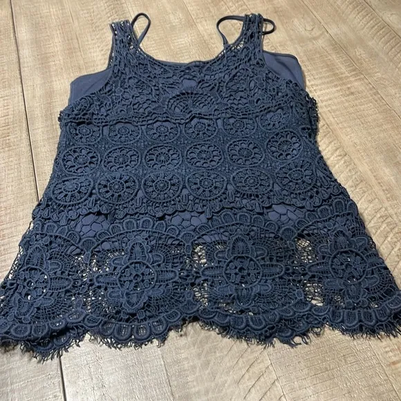 Ultra Pink 2 layer top! Blue camisole with lace overlay Size L - $25 - From Tara
