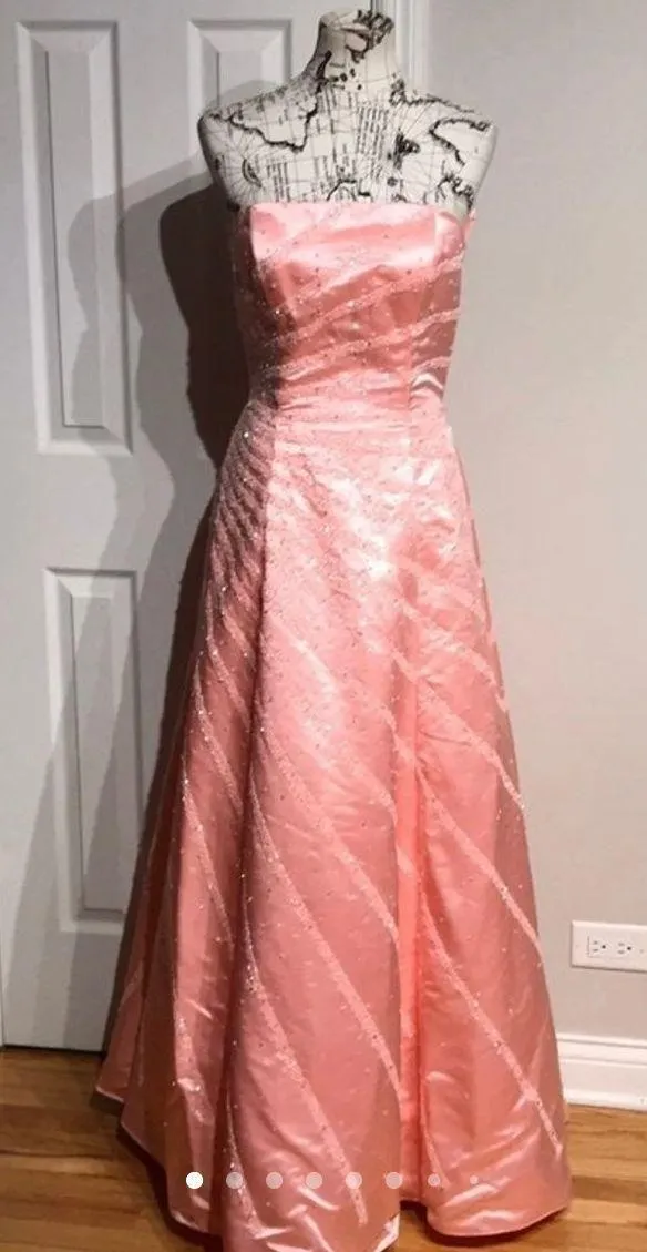 NWOT Gorgeous Embellished Striped print Rhinestone Crystal A-line Beads Fit Flare Strapless BallGown Cocktail Party Formal Evening Prom Homecoming Wedding guest Mother’s Bride Maids padded bust XV shiny sparkle Puffy hem crinoline Overlay Princess Model Corset back lace is missing but cheap and easily to find Structured for amazing Shape Figure Absolutely stunning Pics don’t make justice sz XL/L : PP=16 W=18.5 TL=55 Soft Pink Flamingo Runs small Check measurements* All sales are final