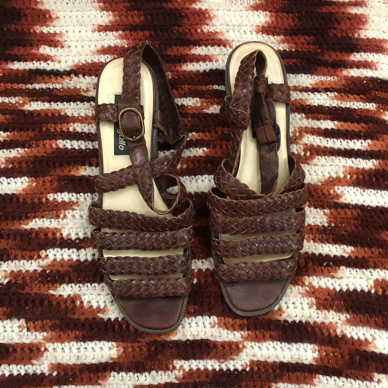 Vintage Woven Leather Sandals Braided Brown Square Round Toe Mules Flats Sandals Slingback Fisherman Maryjane shoes Open Peep Genuine Leather-Size 8N #Pilgrim #peasant #cottagecore #boho #indie