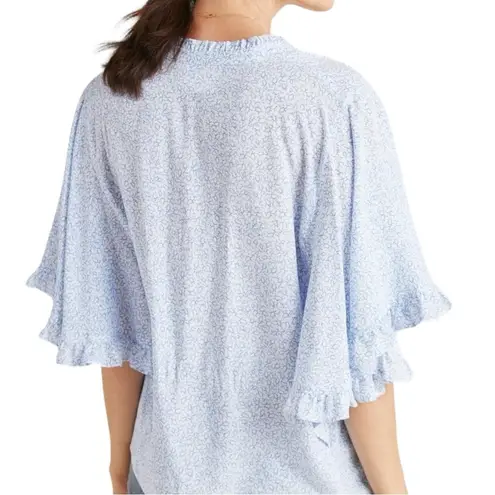 Anthropologie Maeve Women’s Size S Blue White Motif Aveiro Flutter Sleeved Buttondown Top Shirt Blo... Show more