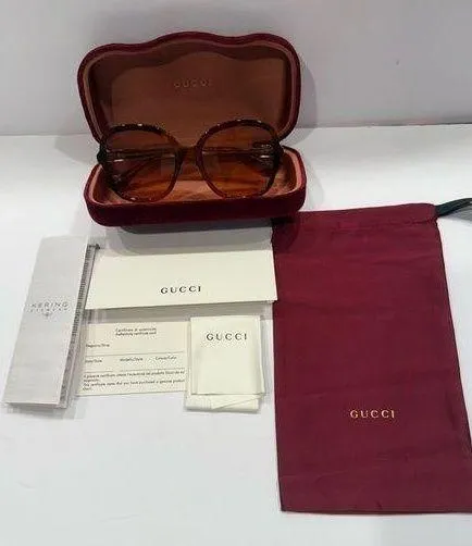 Stylish Gucci sunglasses with a tortoise shell frame. Comes with a branded case and cleaning cloth.... Show more