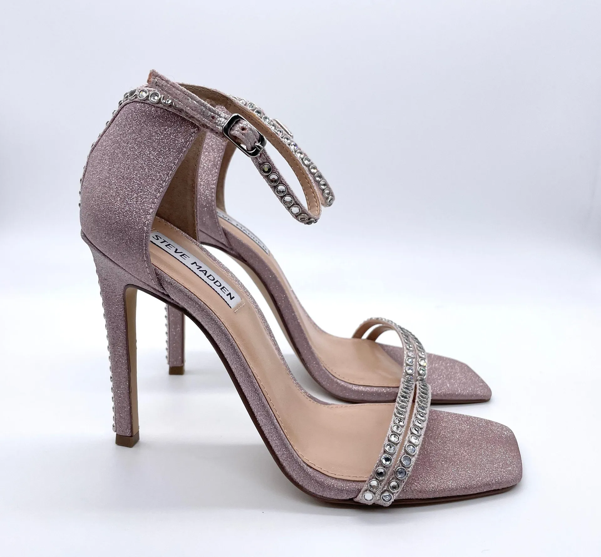Steve Madden Collette Strappy Stiletto Heels Blush Glitter Sandals Size 8 The Collette is an... Show more