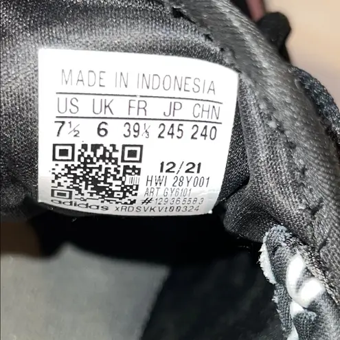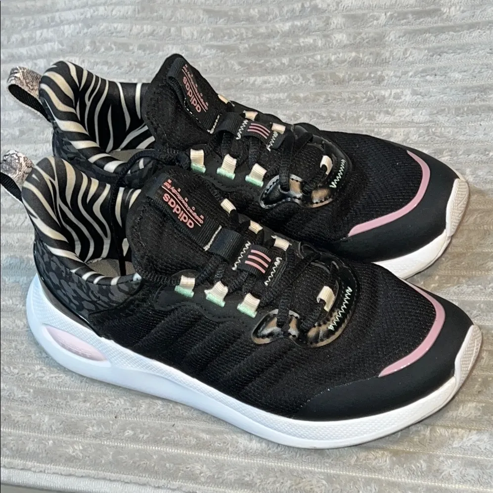 Step out in style with these Adidas women's sneakers. Featuring a sleek black design with pink accen... Show more