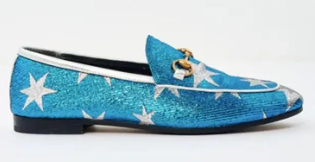 Always received compliments wearing these!! Gucci Glitter Loafers Blue & Metallic Silver Lurex Hors... Show more