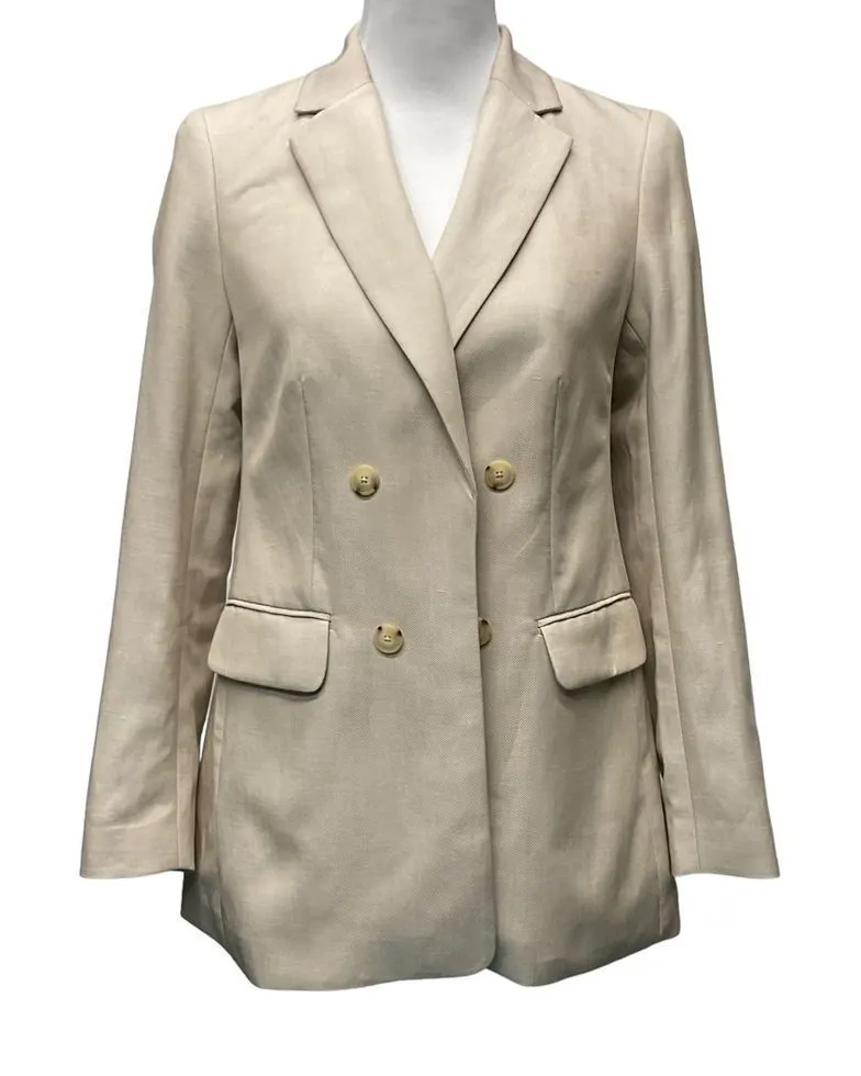 Talbots Petite Double Breasted Blazer Jacket Sz 2P Beige Long Sleeve Work Notched collar Long sleev... Show more