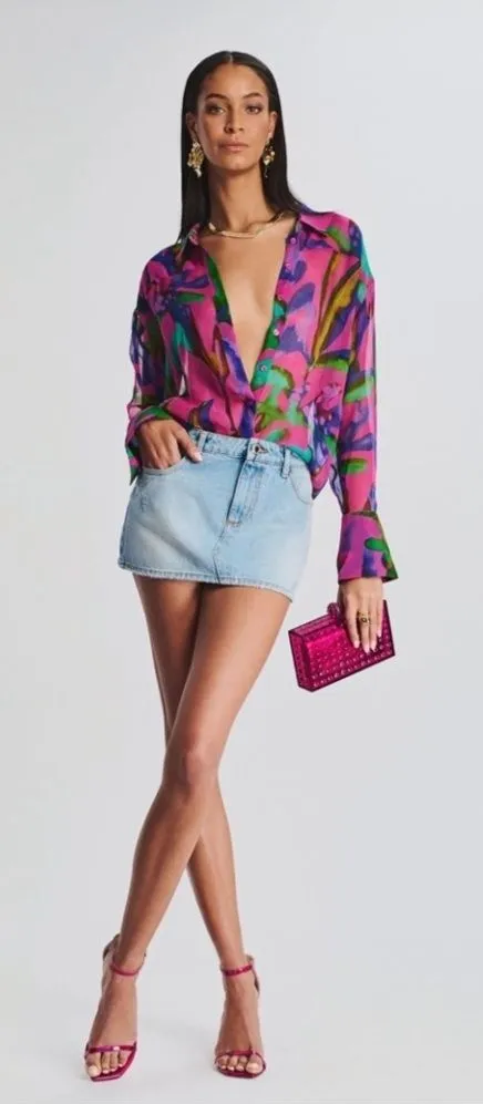 NWT Retrofete Darlinda Mini Micro Denim Skirt Women's Size SMALL Jean MSRP $275 15" across waist The Darlinda Mini Skirt is a classic denim mini skirt. This five-pocket style features a mid-rise and light fading throughout. 100% Cotton Made in Italy *Stock photos are slightly lighter in color. E-17