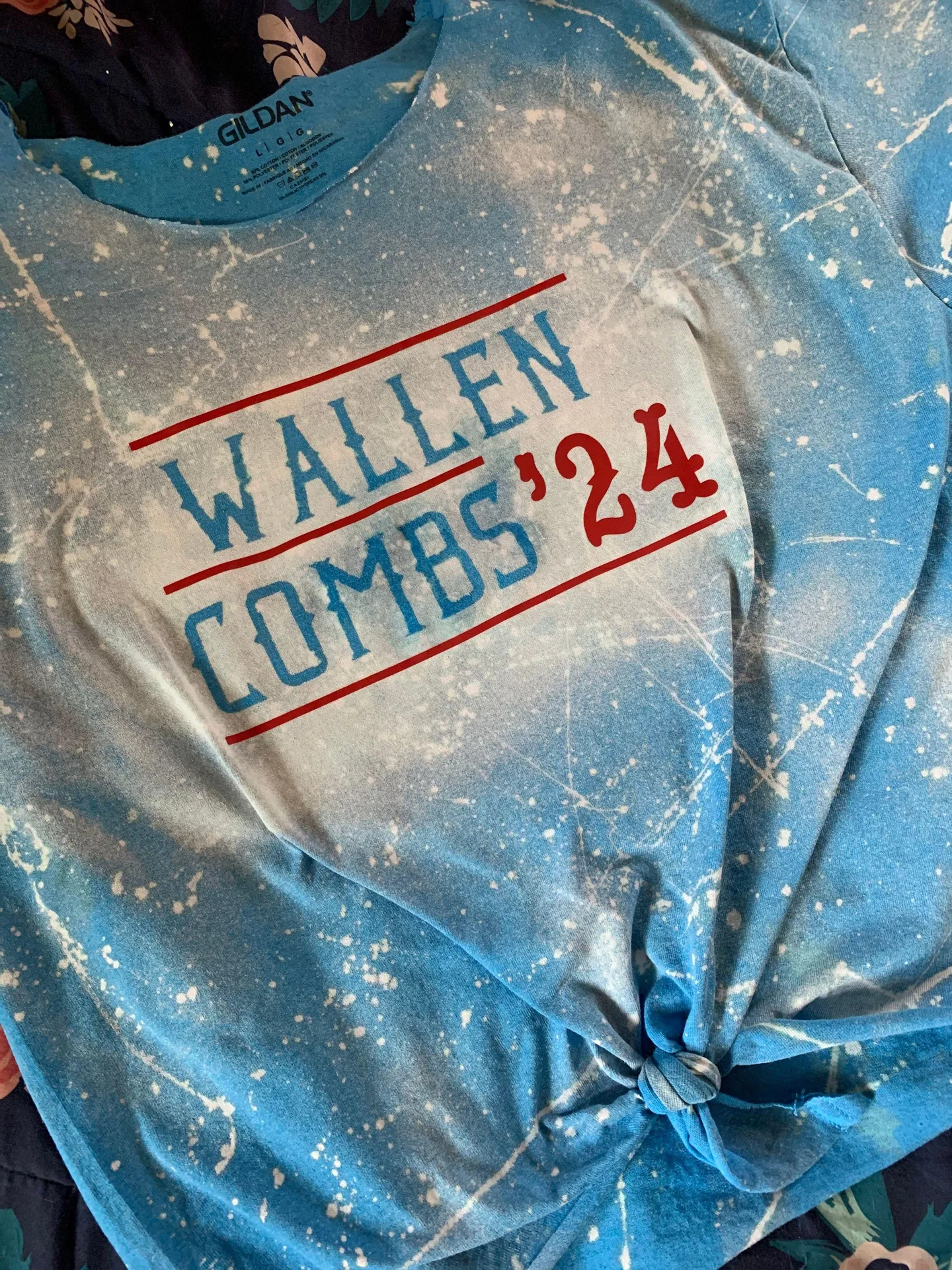 Wallen | Combs ‘24! Hand made by me! Cool bleach dye effect. Cut to have a cute stylish knot around the bottom and the neck hem was cut out for a looser fit. Size large in unisex shirt (women’s large/xl) I can send more pictures if desired!