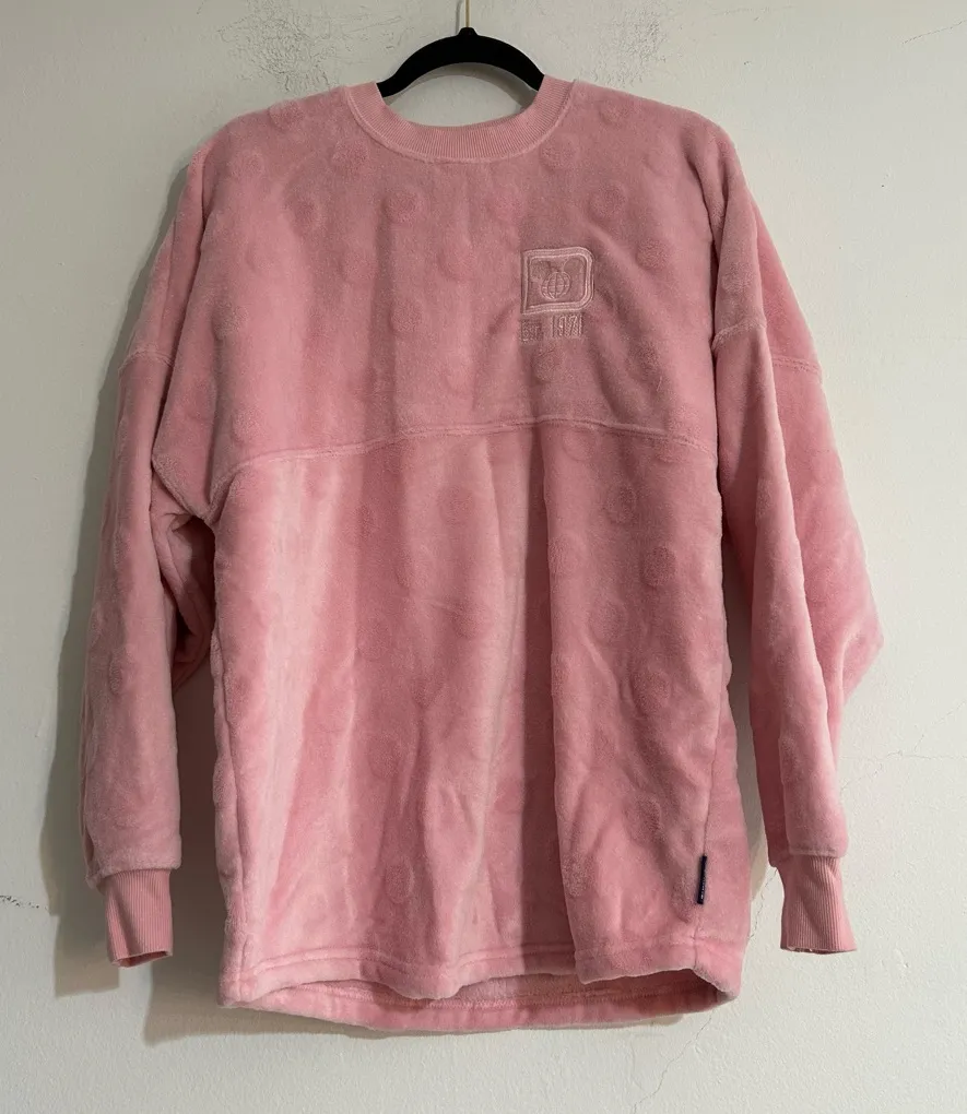 Classic polka dots Drop shoulders Mickey logo on chest Furry fleece, super soft and cozy Pullover Cr... Show more