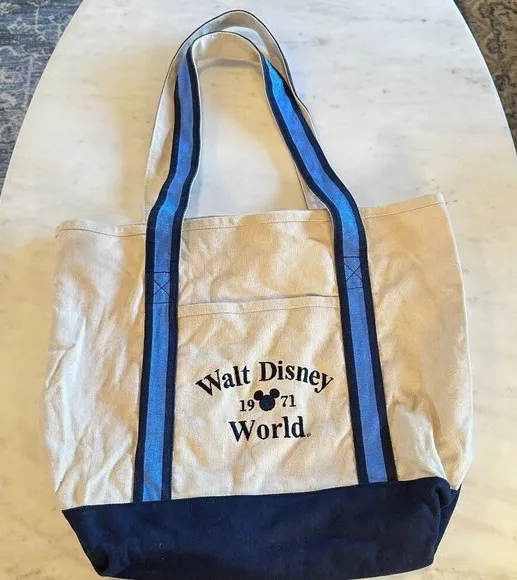 Walt Disney World Vintage Style Collectible Canvas Tote Bag 1971 Blue Handles Pre-owned in Great Co... Show more
