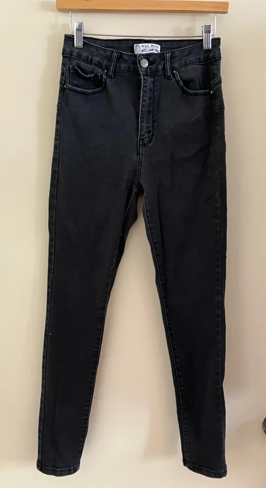 Discover the perfect blend of comfort and style with Wax Jean's Skinny Jeans in classic black. These high-rise jeans are designed to hug your curves with a super soft, fully stretchable denim that moves with you. Featuring a flattering high rise and a sleek skinny fit, these jeans are perfect for any occasion, from casual outings to a night out on the town. The 5-pocket design and button closure add a touch of timeless style. Size 11 Standard, pre-owned in great condition. Thank you for visiting our shop!