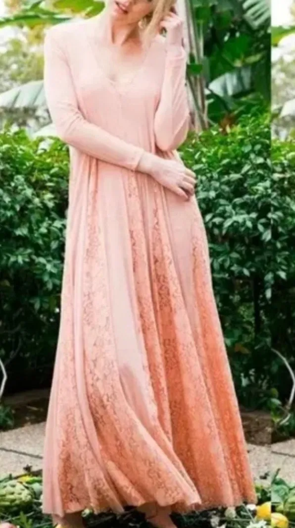 We Are HAH (Hot As Hell) Mama C Long Sleeve Copper Rose Pink Sheer Lace Maxi Dress. Signature Stret... Show more