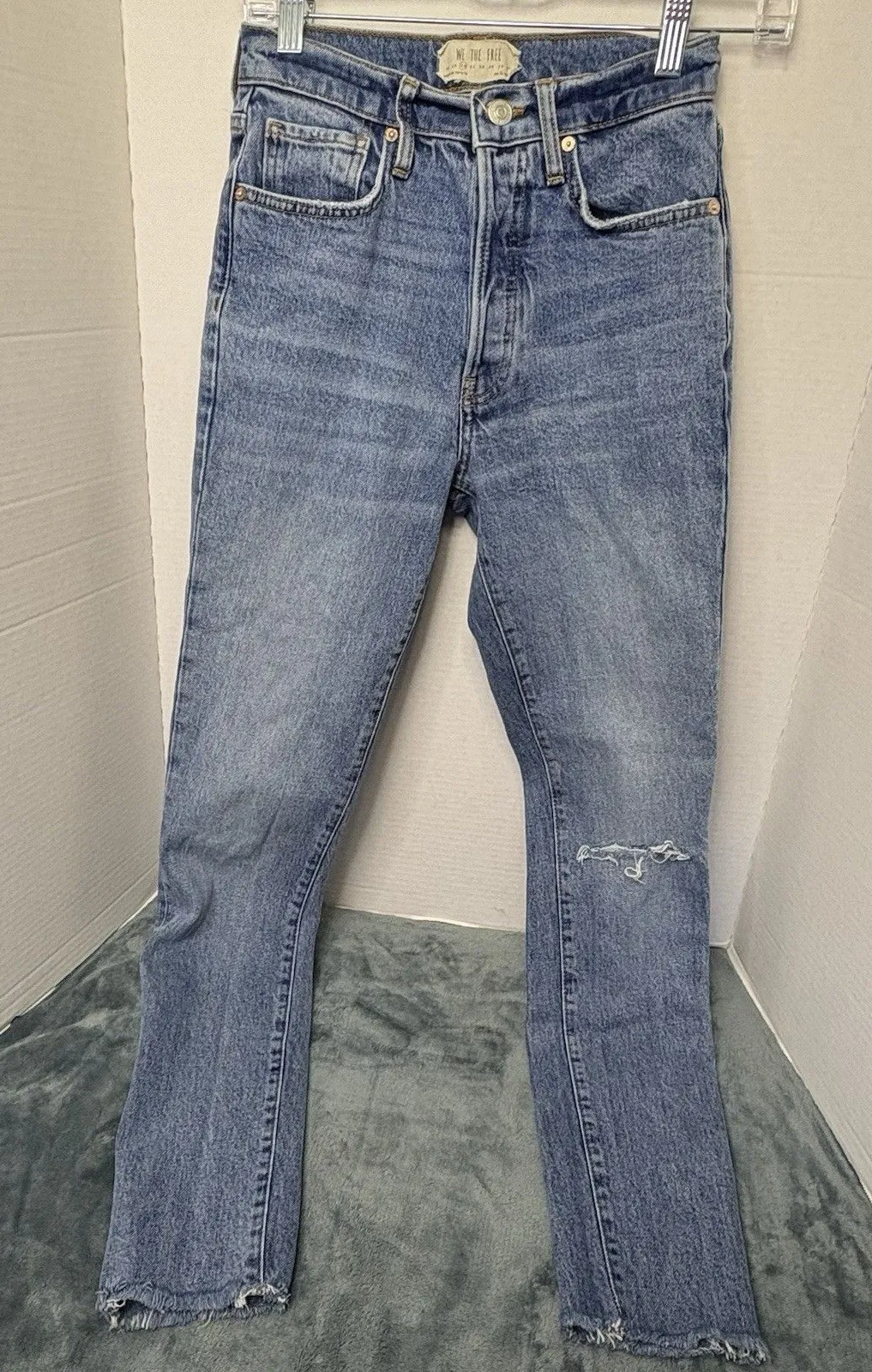 The product is a pair of Free People high rise button fly denim jeans in size 26. These jeans featur... Show more