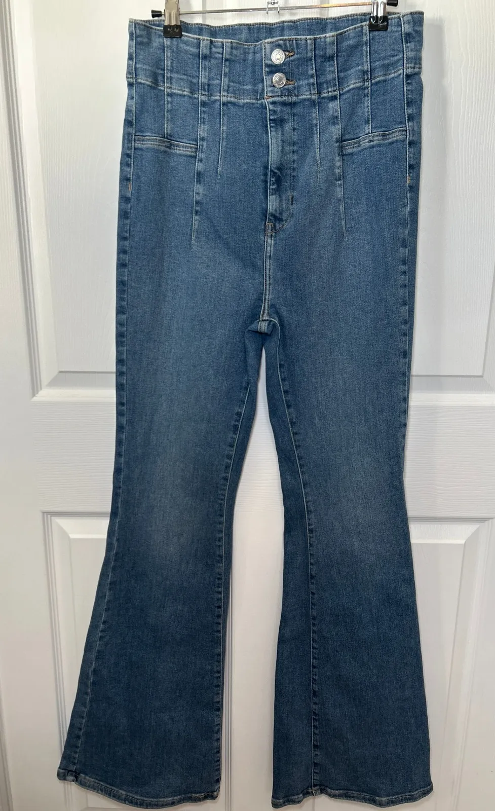 Keywords: We The Free, flare jeans, high rise jeans, wide leg jeans, denim jeans, blue jeans, size 31, retro jeans, boho jeans, casual jeans, stylish jeans, women's jeans, double button jeans, high waisted jeans