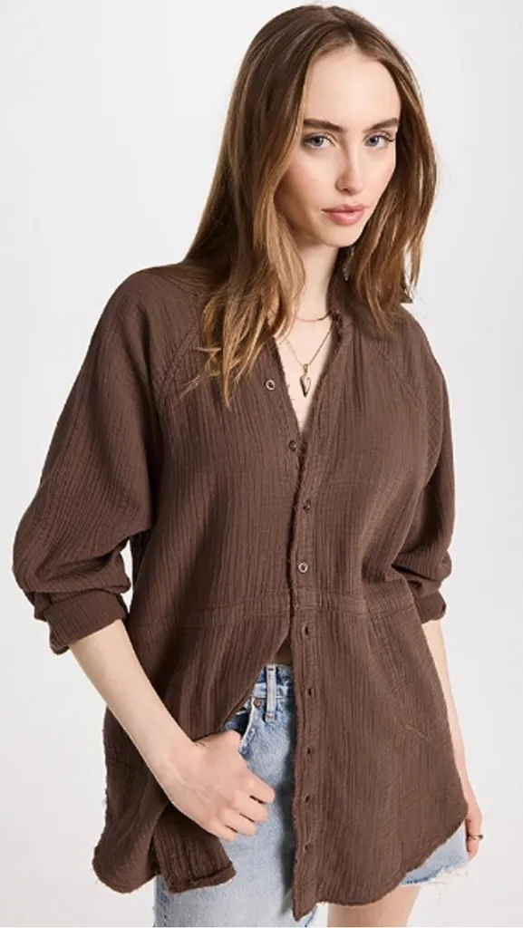 We The Free is a casual line from the boho women’s clothing brand Free People. The label’s tees, dresses, blouses, jeans, and jackets feature oversized fits, unique washes, and grungy distressing for an effortless, laid-back look.