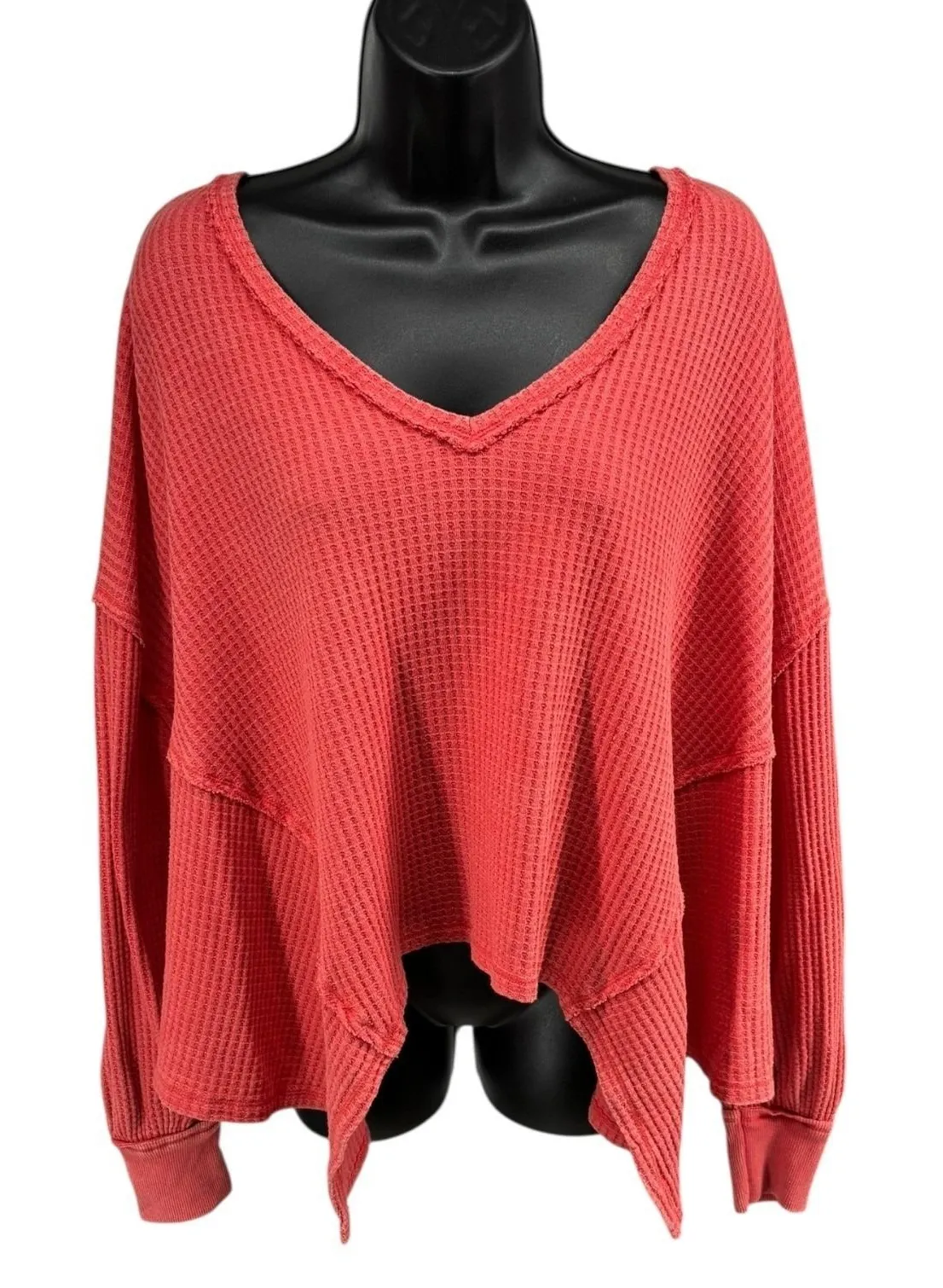 We The Free by Free People waffle knit "thermal" top in a red/brick red shade. Flowy oversized fit w... Show more