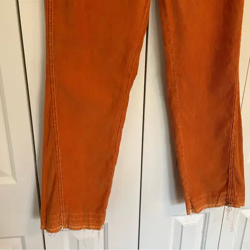 We the Free Pants Sz 30 Orange corduroy Cargo flap pockets Straight leg Raw hem High rise Preowned... Show more