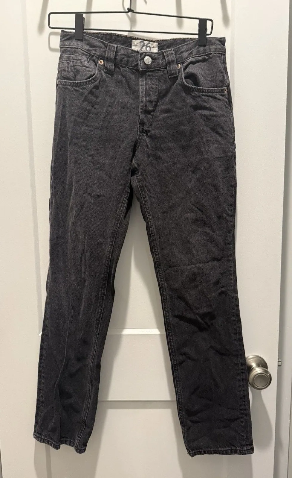 The product is a pair of We The Free People jeans in a size 26, featuring a solid gray color with a... Show more