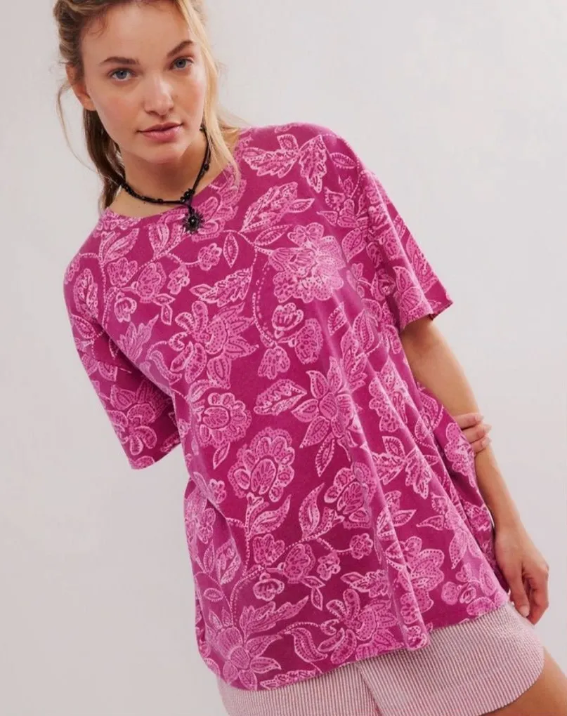 The We The Free by Free People Nina Printed Tee Shirt in Magenta is a stylish and comfortable t-shir... Show more