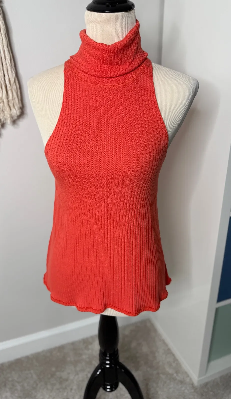 We the Free People Orange Ribbed Drippy Rib New City Turtleneck Tank Sleeveless Top Shirt XS Size:... Show more