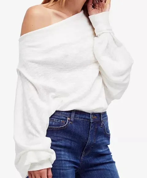 Classic We The Free Free People Skyline Off-The-Shoulder Thermal Sweater in white size small. Soft a... Show more