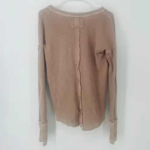 A tan thermal V-neck long sleeve top from We The Free. This top features a classic waffle knit textu... Show more