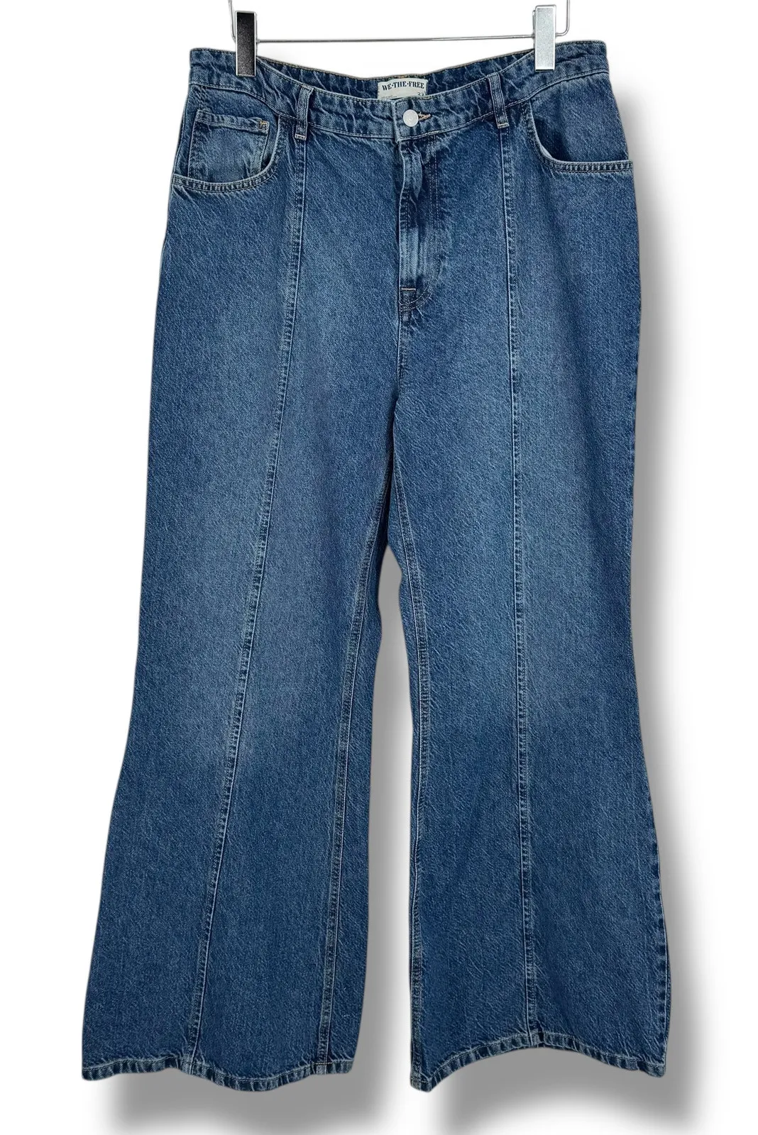 We The Free Wallflower jeans women's 33 wide leg mid rise flare blue denim retro - $67 - From Baldi