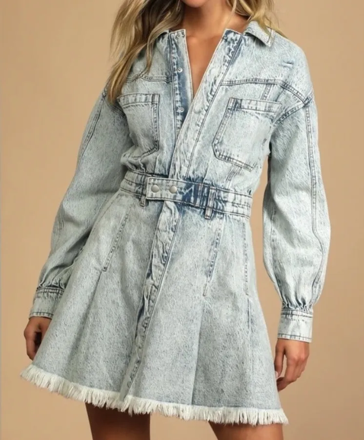 We The Free Free People Chain of Command Pleated Blue Mini Dress Size Large. Excellent condition! 74... Show more