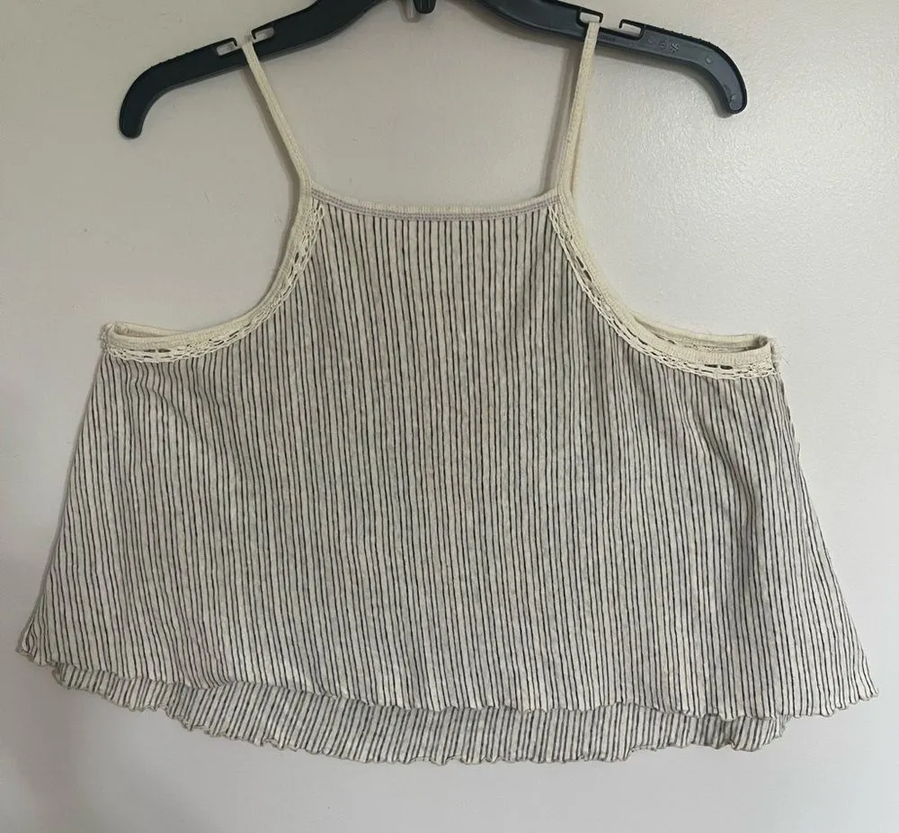 We the Free Women's Gray Cream Striped Tank Crop Top Flowy Summer Size medium Pit to pit 19” Length... Show more