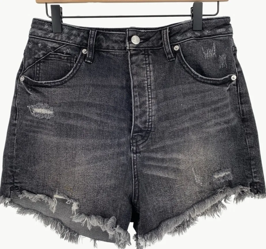 We The Free Women's Curvy Distressed High Rise Cut Off Jean Shorts Sz 31 (US 12), Black ❀ Details... Show more