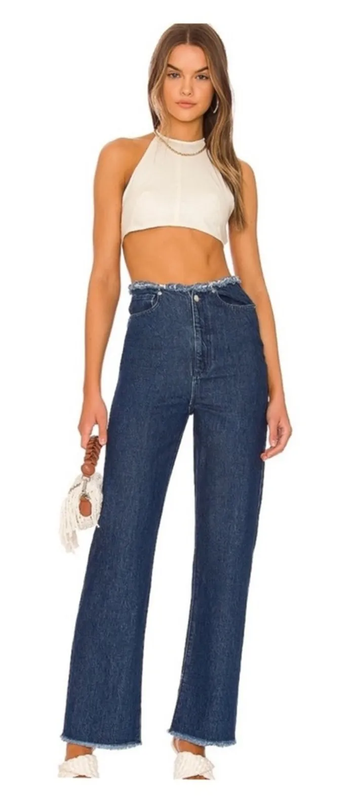 NWT WeWoreWhat High Frayed Waistband Straight Leg Jeans 26 Blue Features: -Button zipper fly -5-poc... Show more