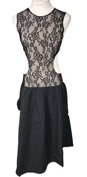 Introducing the WeWoreWhat Cutout Midi Dress, an exquisite addition to your wardrobe that effortlessly combines elegance and comfort. This stunning dress, designed by the renowned brand WeWoreWhat, is perfect for women seeking a chic and stylish outfit for any occasion.The Cutout Midi Dress in black boasts a lace design, an open back, and a flattering asymmetrical high-low hem, ensuring you'll make a statement wherever you go. With its unique and fashionable features, this dress will make you feel like a true fashion icon. New with tags. Keywords: WeWoreWhat, midi dress, black dress, lace overlay, asymmetrical, cut out, women's fashion, evening wear, cocktail dress, elegant, textured crepe poplin, stylish, wedding guest. Brand: WeWoreWhat Size: M Style: Cut Out, Asymmetrical, Midi Dress Dress length: Midi Color: Black Department: Women Garment care: Machine Washable