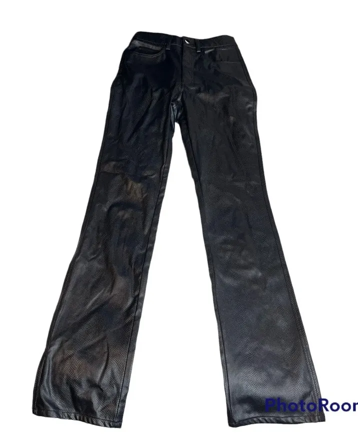 DANIELLE BERNSTEIN Croc Flare Faux Leather Pants 25 Black High Waist 100% polyurethane Dry clean onl... Show more