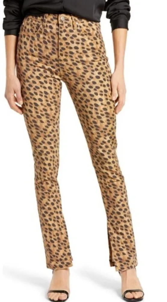 Smoke Free Home New With Tags We Wore What Stiletto High Waist Split Hem Leopard Skinny Jeans Leopard spots bring fierce fun to these nonstretch high-rise skinnies with split hems that will easily become your everyday faves. 35" inseam; 11" leg opening; 11 1/2" front rise Zip fly with button closure Five-pocket style 100% cotton Machine wash, tumble dry