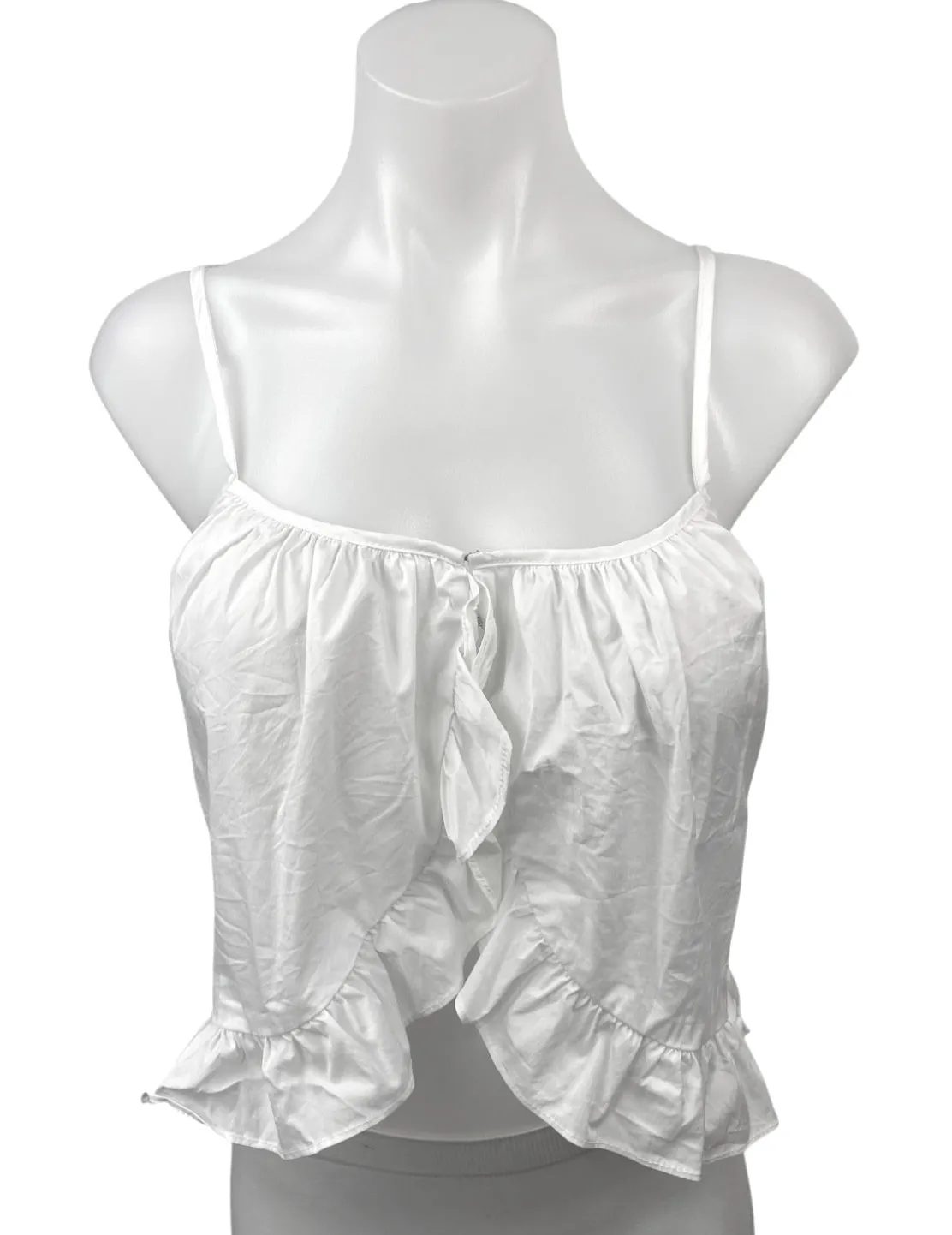 WeWoreWhat Danielle Bernstein White Boho Sleeveless Cami Ruffle Camisole Tank Top Size S Size: S Condition: Like New Chest: 34” Length: 13” *Measurements are taken lying flat. We double the flat lay measurements of the chest. ** If displayed on a mannequin, the size is small; if on a plus-size mannequin, the size is extra large.