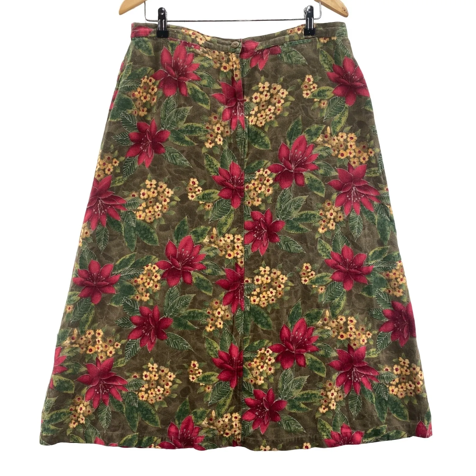 Westbound Skirt Womens XL Green Floral Print Cotton Linen Blend Slit Pockets Elastic Waist Button, z... Show more