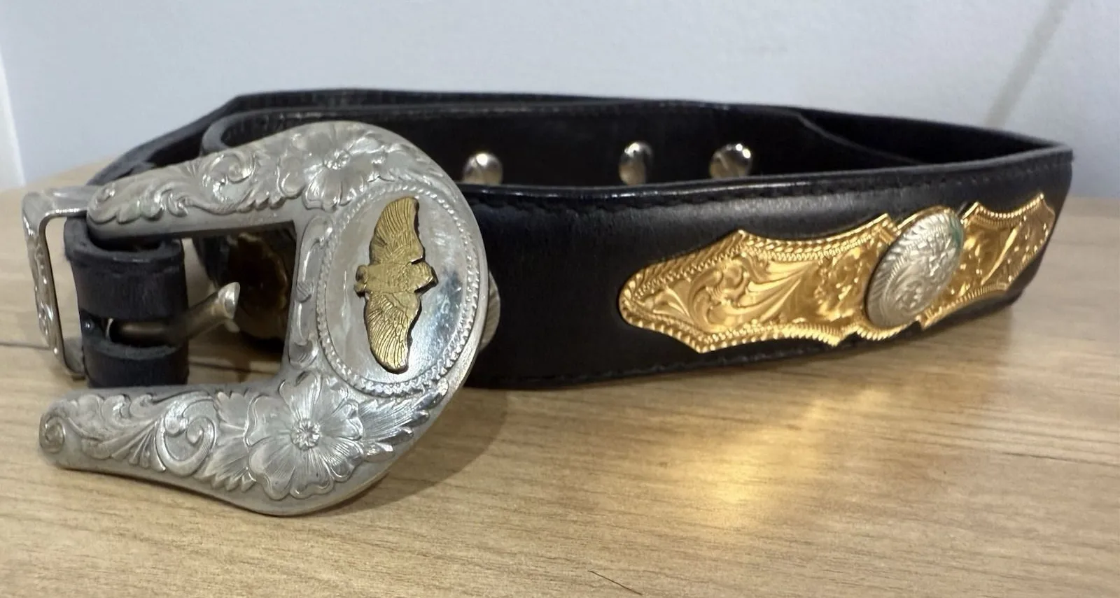 Western Cowgirl Black Leather Belt Concho Heart German Silver Big‎ Al's 38" Boho - $248 - From ivette