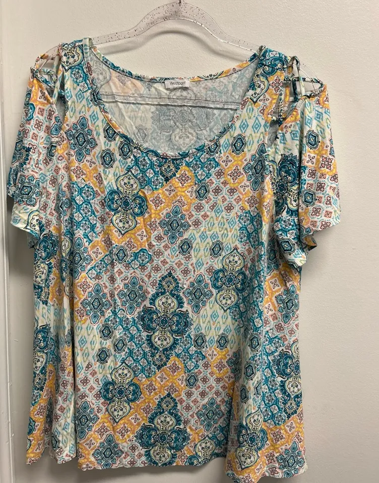 Multicolor Floral Damask Patterned Women Top Blue Size XL - $13 - From Mary