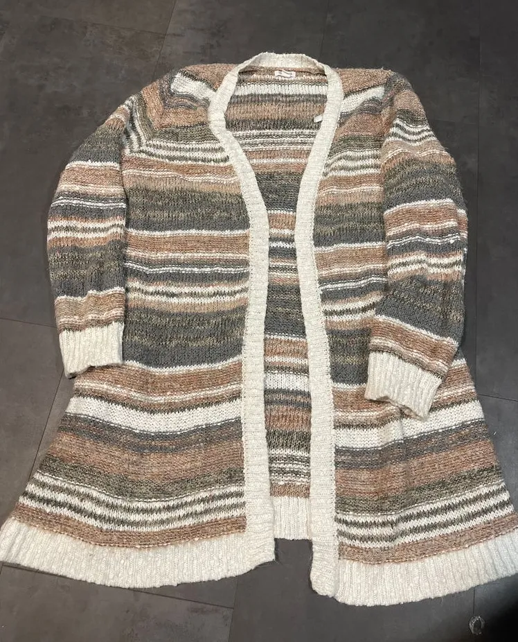 Wrap yourself in comfort with this Westport striped knit cardigan. The cozy earth tones create a versatile look perfect for layering over casual outfits or dressing up for the office. Its open front design offers effortless style for chilly evenings or air-conditioned spaces. Ideal for autumn walks, weekend brunches, or curling up with a good book. This cardigan adds a touch of warmth and style to any ensemble. Keywords: Westport, cardigan, striped, knit, open front, earth tones, cozy, layering, versatile, autumn, casual, comfortable