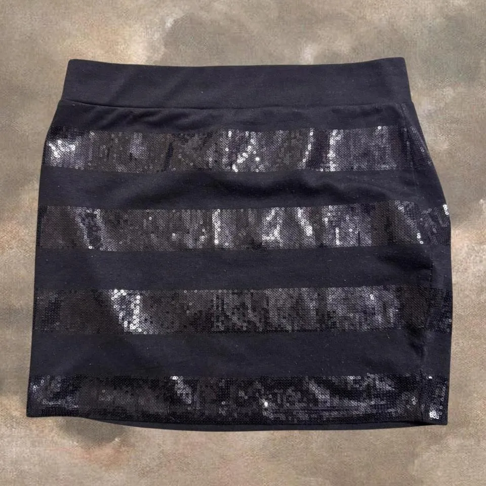 Y2K Wet Seal black sequin mini skirt that can double as a tube top 🖤✨ Stretchy and sparkly with alt... Show more
