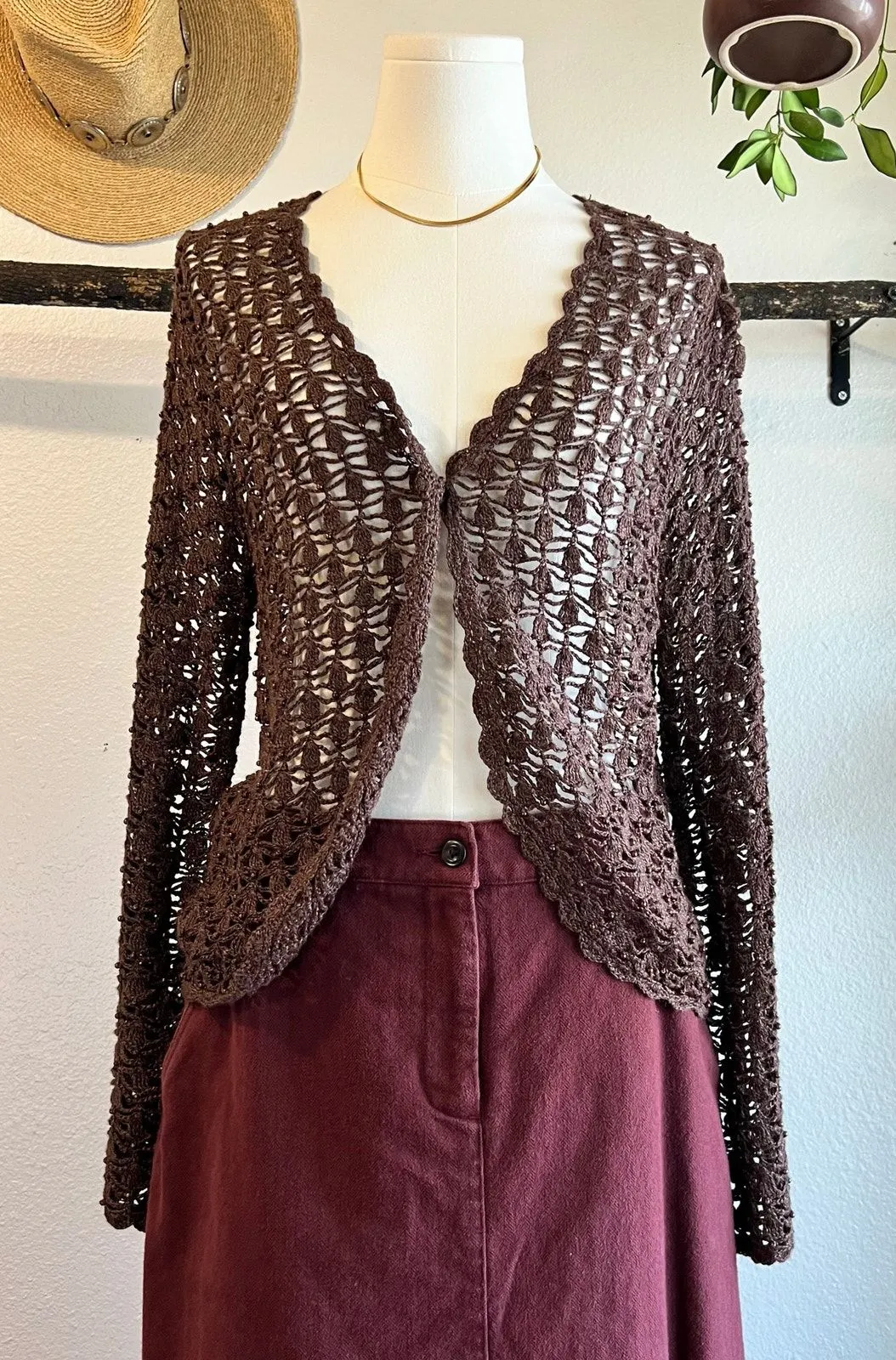 Flat Lay Measurements: Length - 22 Pit to Pit - 19 Size- Small Color- brown Brand- Wet Seal Materia... Show more