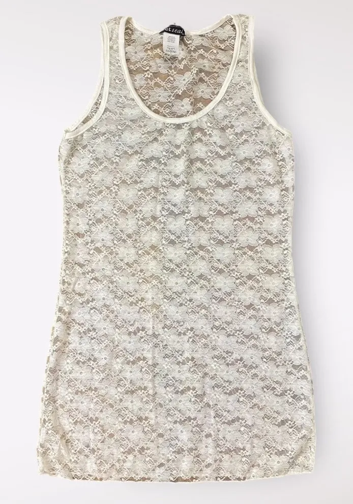 -Wet Seal Y2K White Lace Sheer Mini Dress Size Large Coquette Floral -Preowned in great condition -M... Show more