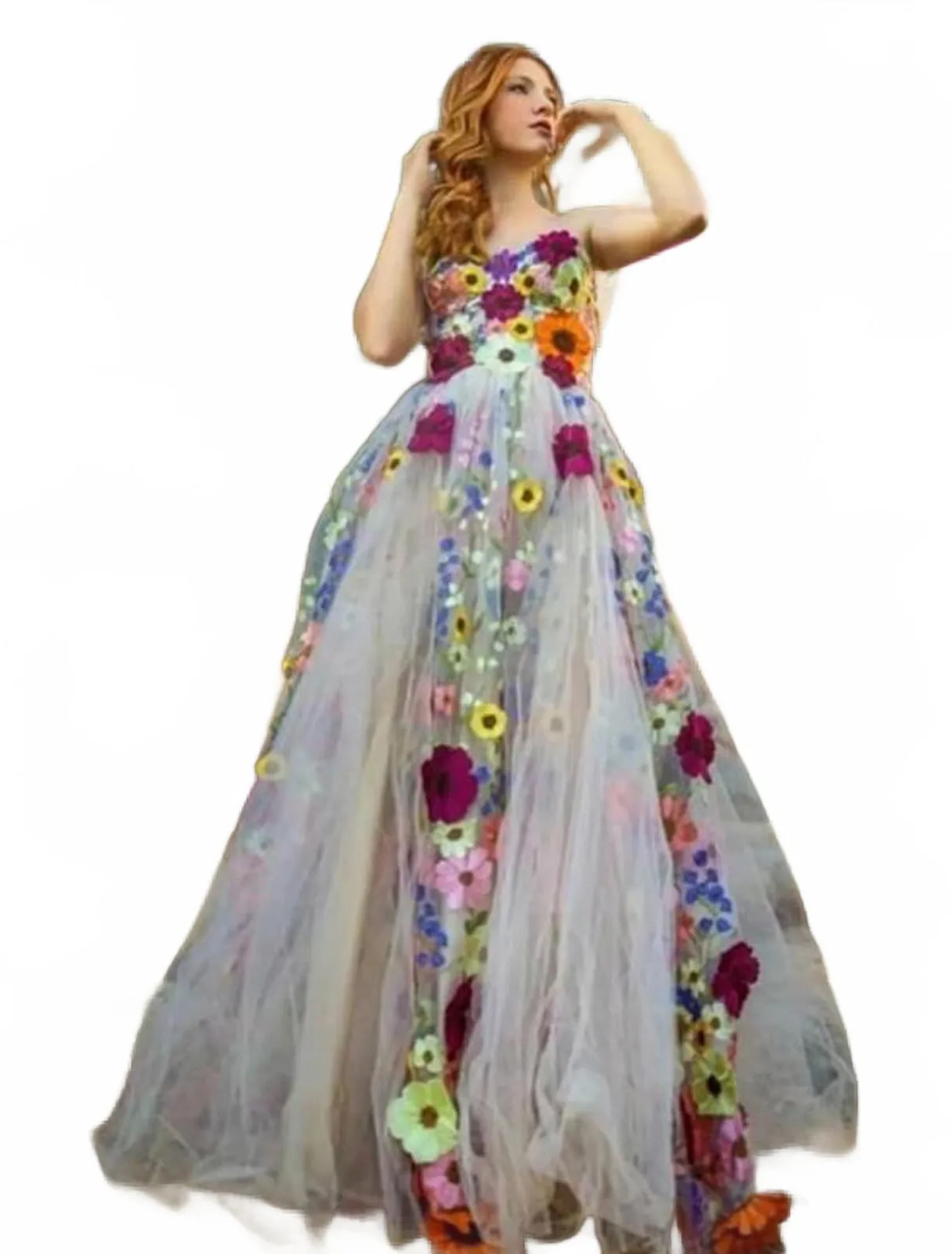 Whimsical Floral Boho Beach Wedding Prom Dress w/Removable Sleeves Size 10 - $200 - From Plumerya