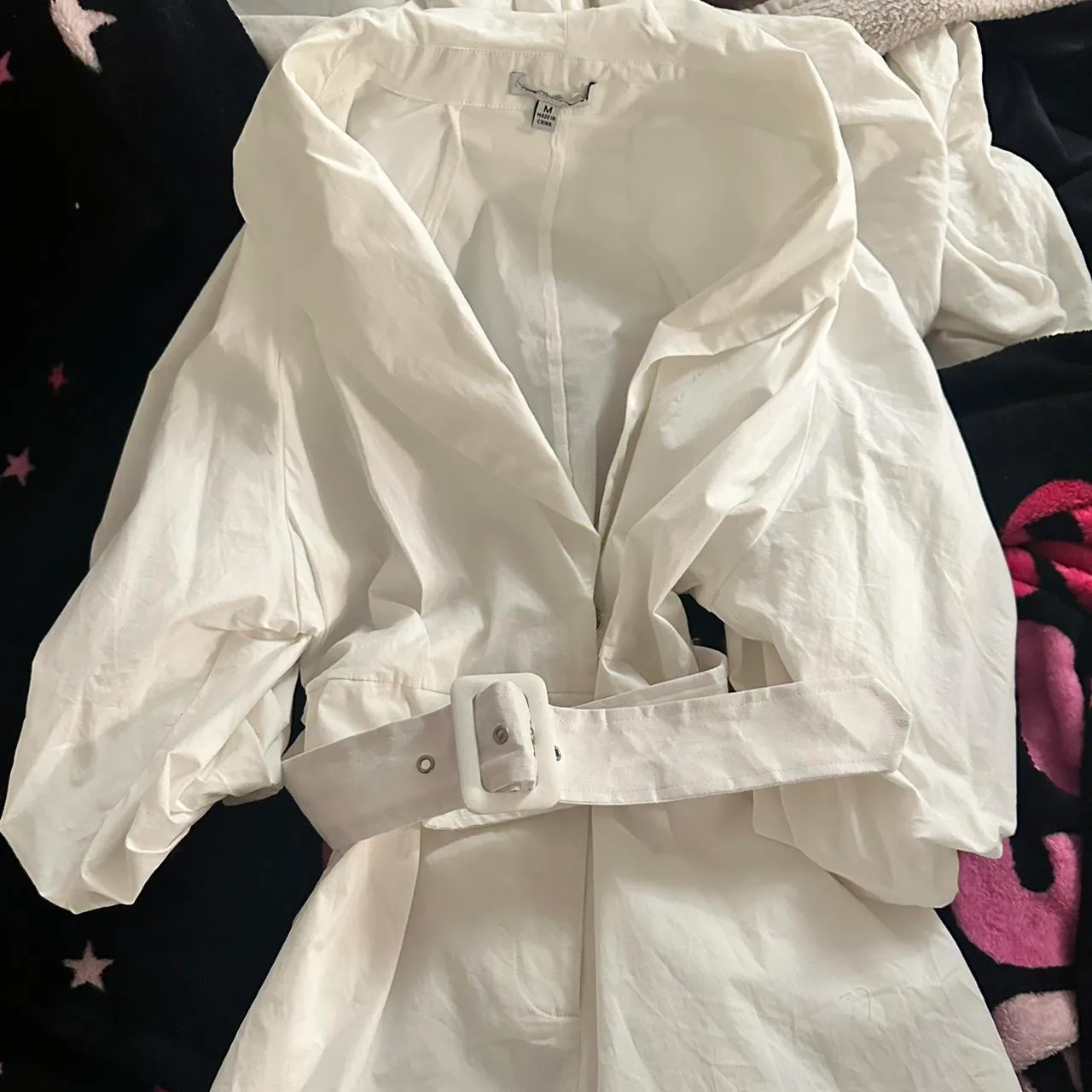 Size medium Stock photo isn’t the exact romper I’m selling, it’s similar - the one I’m selling has a belt, zipper and button incl. forget what brand it is - and took the tag out, could be Zara, asos or revolve
