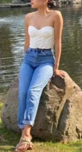 I’m a 36C and it fits great! Fits great on bigger or smaller chest also ! Super cute trendy top with lace up tie in back perfect for upcoming spring/summer 100% cotton and no need to wear a bra great condition.