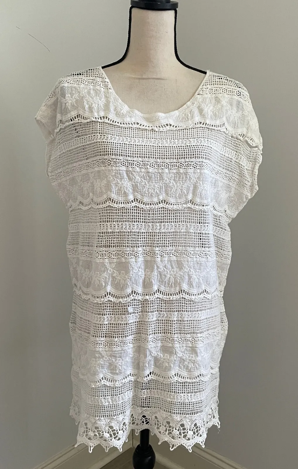 Measurements: • Bust: 20 inches • Length: 30 inches Style: T-Shirt Dress, Kaftan Dress Length: Short Color: White Department: Women Sleeve Length: Short Sleeve Pattern: Floral Occasion: Casual, Travel Material: Cotton Neckline: Scoop Neck Character: Boho Girl, Beach Babe, Coastal Grandma, Free Spirit, Bohemian Fabric Type: Crochet Season: Spring, Summer Keywords: crochet dress, lace dress, white dress, cover up dress, beach dress, summer dress, boho dress, festival dress, tiered dress, dahna la collection, casual dress, vacation dress, resort wear, bohemian dress, #boho #bohemian #peasant #bloomcore#gramdmacore #prarie #indie #festival #cottagecore #lace #floral #girly #girlhood #girlhoodcore #pretty #angel #angelcore Dahna LA Collection White Crochet Lace Tiered Beach Cover Up Dress Medium Boho